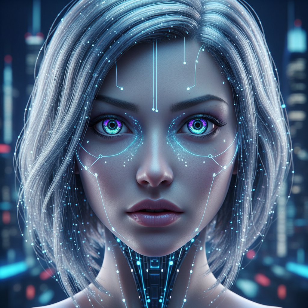 Alt: AI avatar blending human and digital features for grief support