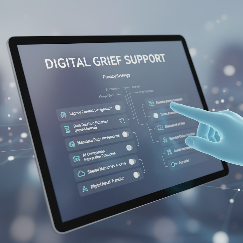 Alt: User configuring privacy on digital grief support platform for grieving families