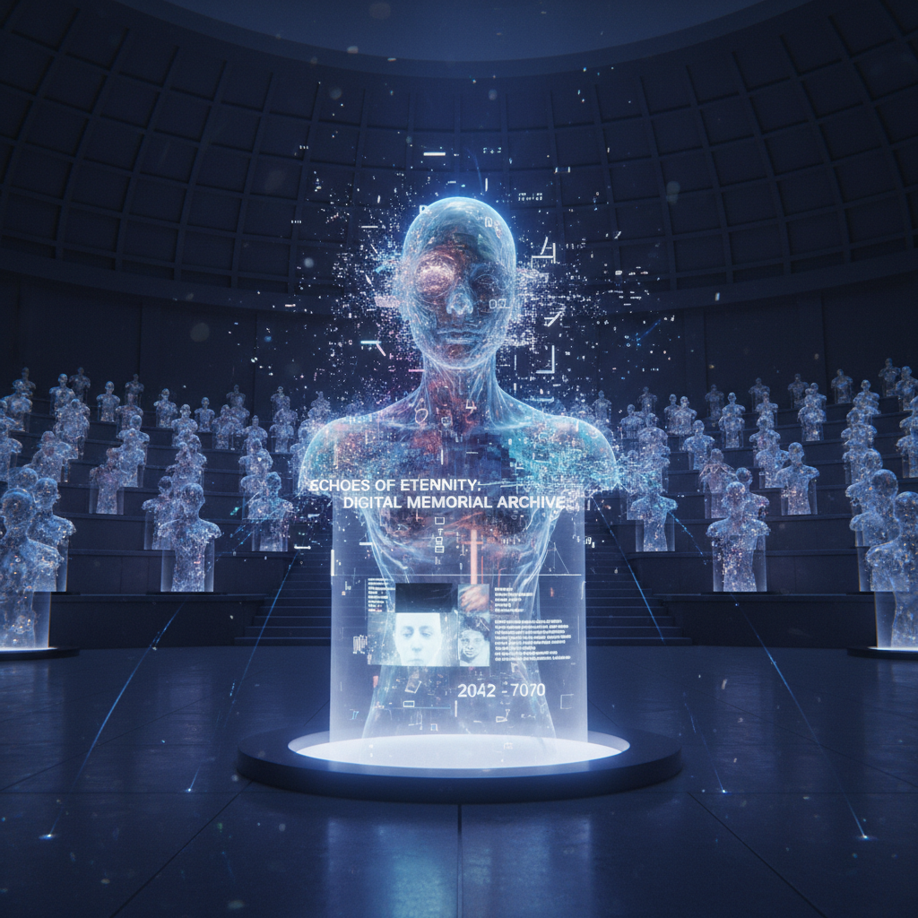 The concept of preserving one’s persona and memories in a form that “lives on” after death—often as an interactive AI.