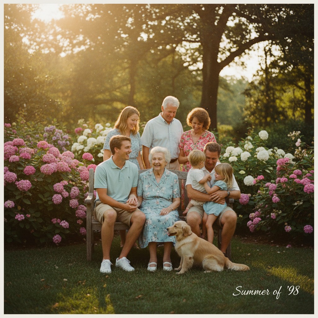 - “Then and now” photo blends for generational impact
