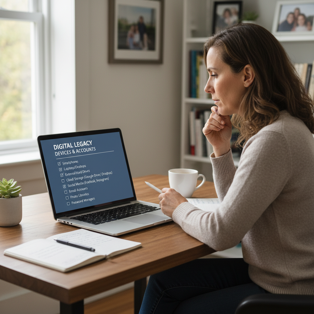 - Take inventory: Make a list of all your online accounts, cloud storage, and digital keepsakes.